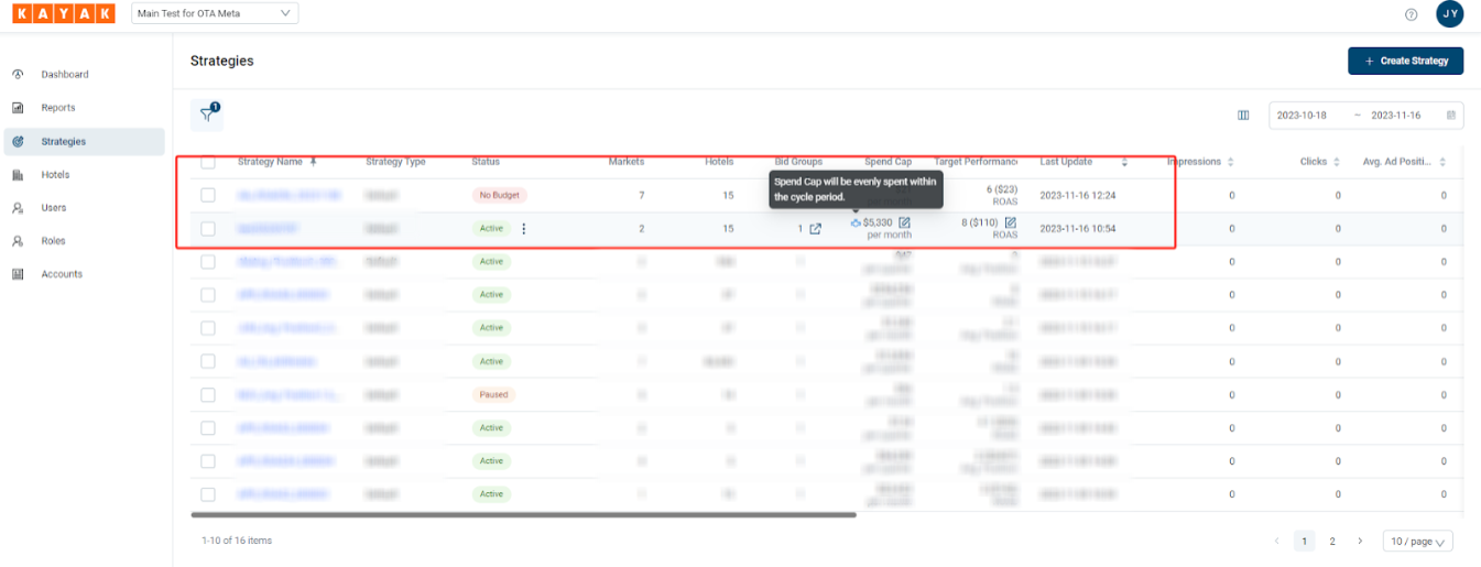- You can enable the budget evening pacing when editing the ROAS strategy, and also view the evening pacing tag in the strategy list when it is enabled.