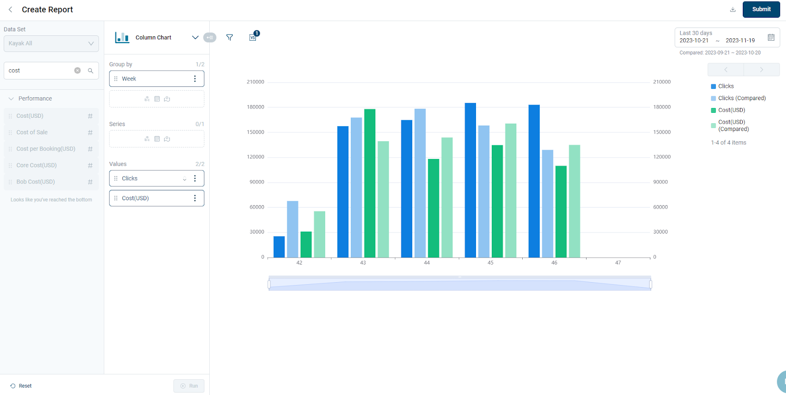 - You can select the Column Chart view to generate the performance report.